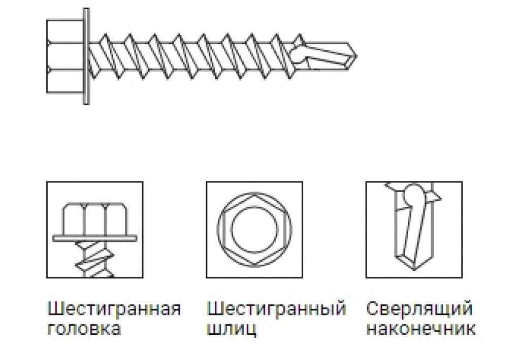 Винт самонарезающий со сверловым концом и шестигранной головкой HEX