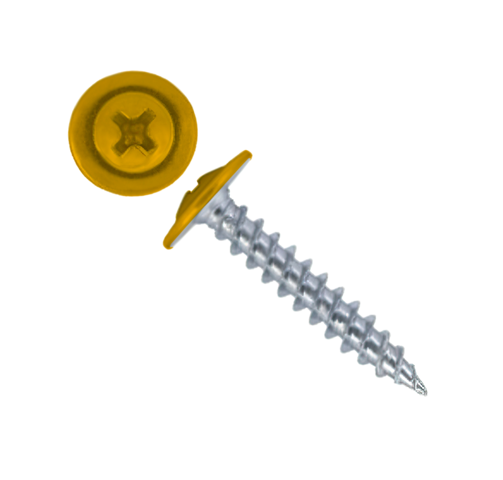 Саморез с напрессованой шайбой (ПШ) - имеют широкую плоскую головку под крестовидную биту (PH2), которая одновременно выполняет роль шайбы. Наконечник оцинкованный - острый.