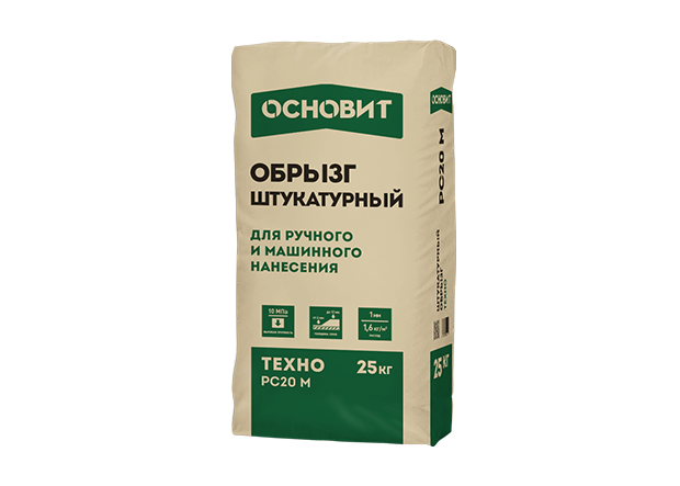 Штукатурный обрызг ОСНОВИТ PC20 M предназначен для предварительной обработки оснований перед нанесением цементных выравнивающих штукатурок.
